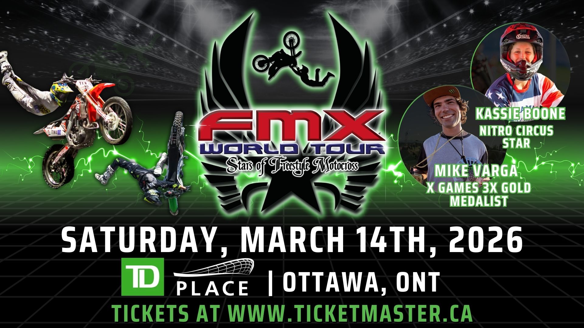 FMX World Tour is an extreme action sport competition that was formed to tour, USA, Canada, Mexico and select European countries. Pro riders will participate in an intense competition, throwing out some of the most death-defying tricks ever seen in the freestyle moto-cross world.
