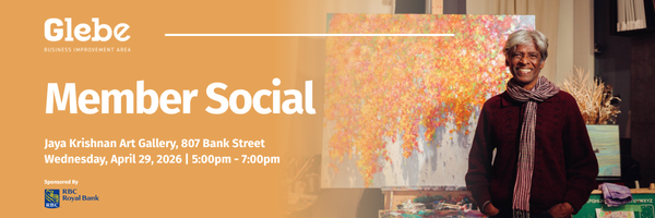 Join us on April 29 from 5pm – 7pm for a lovely evening at Jaya Krishnan Art Gallery, 807 Bank Street, to mingle and chat with your fellow BIA Members. Nibblies and refreshments will be served.