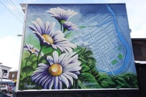 Wild Growth - Roll Her Sleeves Location: 819 Bank Street, Wild Oat Bakery This explosion of organic forms and vibrant colours mirrors the creative energy of the beloved bakery it adorns. Wild Oat offers delicious hand- made pastries including vegan, gluten-free, and fruit-sweetened options. |